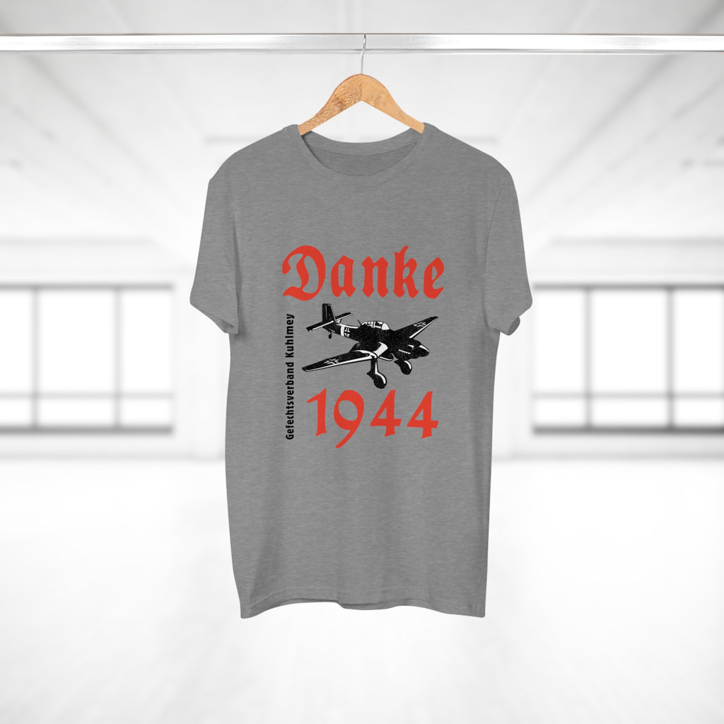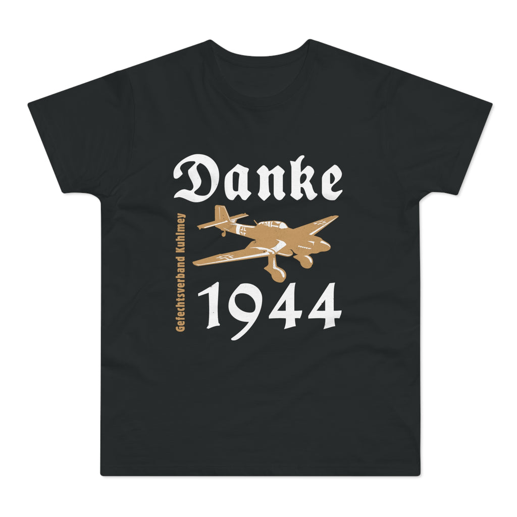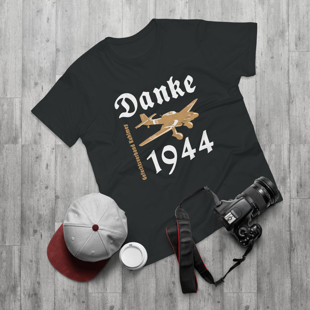 Danke Kuhlmey T-paita | "Danke Kuhlmey" eli kiitos lento-osasto Kuhlmey'lle hyvin vedetystä keikasta Karjalan kannaksella kesällä 1944. Keikan huipensi yhdessä suomalaisten kanssa sävelletty torjuntavoitto Tali-Ihantalassa.